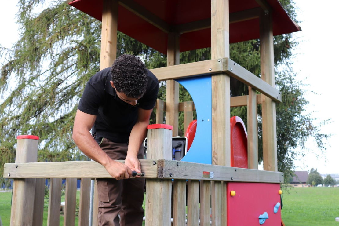 Das oberste Gebot auf einem Spielplatz ist die Sicherheit. Deshalb führen wir regelmässige Sichtkontrollen durch, wo der Spielplatz genau inspiziert wird und allfällige Beschädigungen werden behoben.